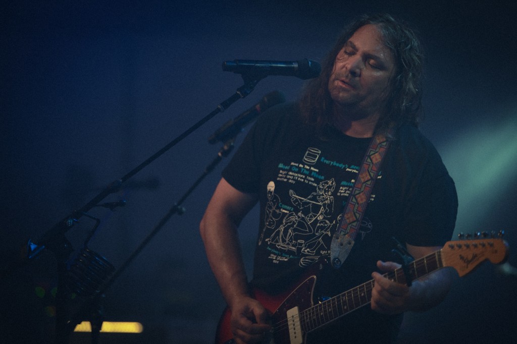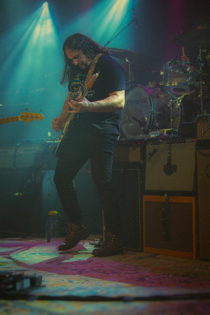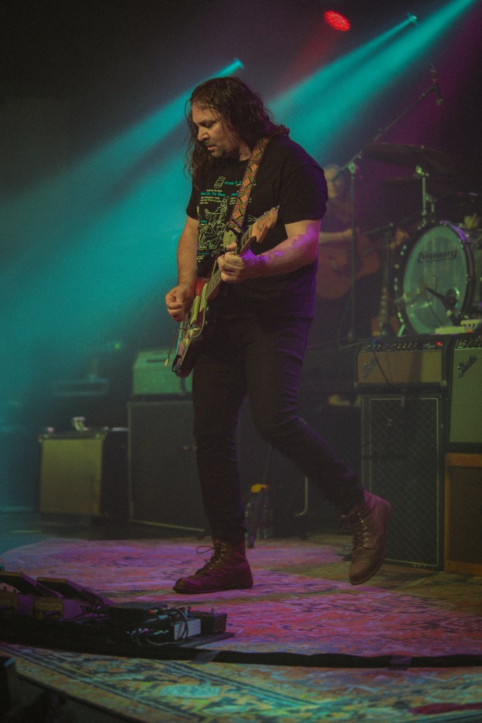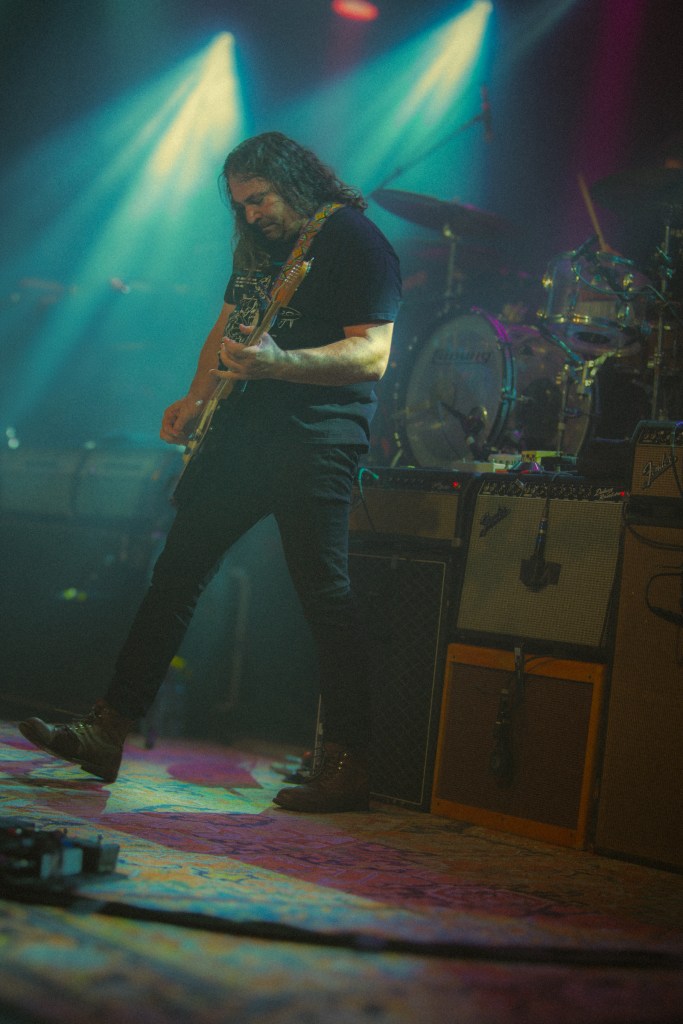 In a very warm, dimly lit venue, The War on Drugs take to the stage for the second of their two night stay in Liverpool. The setup features numerous amps and minimal basic lighting along with homely rugs, ensuring that tonight’s spectacle is purely focused on the intricate, jammy nature of their songs. Is right. No frills, stripped back, all about the tunes is the philosophy that suits them down to the ground.