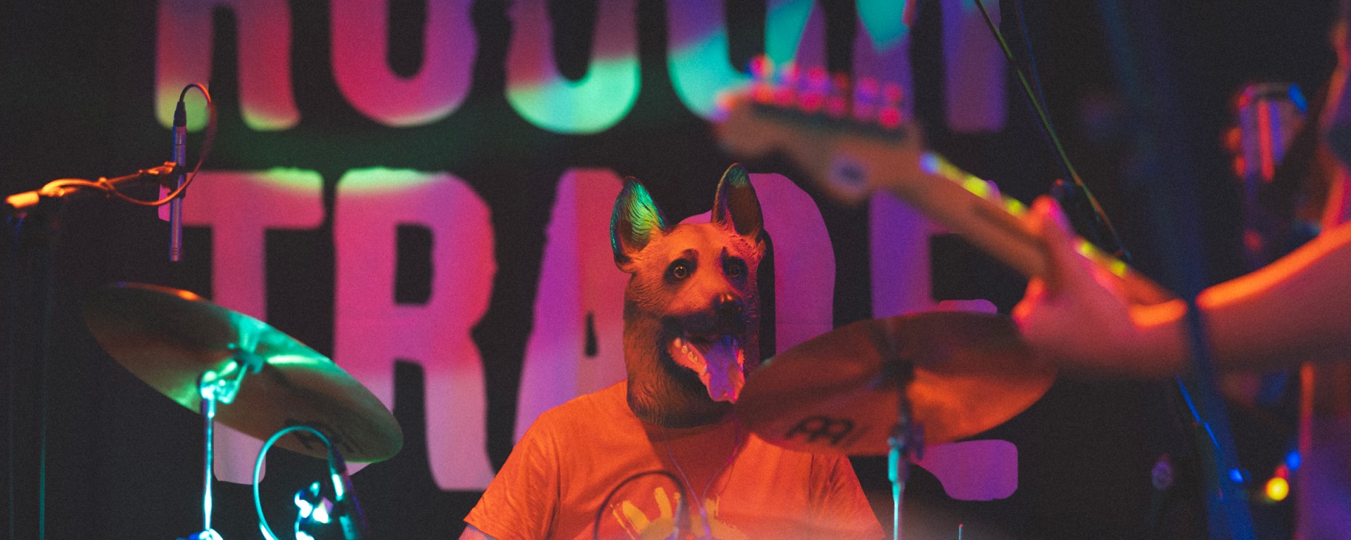 It does make for a peculiar vibe. The inner mosh pit enthusiast clashing with the inner record collector within all of us, an unspoken level of consideration between us in the name of preserving our precious new acquisitions so that they would remain signature worthy come the end of the show. The air crackled with the conflicting desires to let loose and to keep those corners sharp, especially when drummer Johnny “Doghead” Hutchinson, donning his signature latex dog mask, threatened to send vibrations through the floor and into fragile record sleeves.