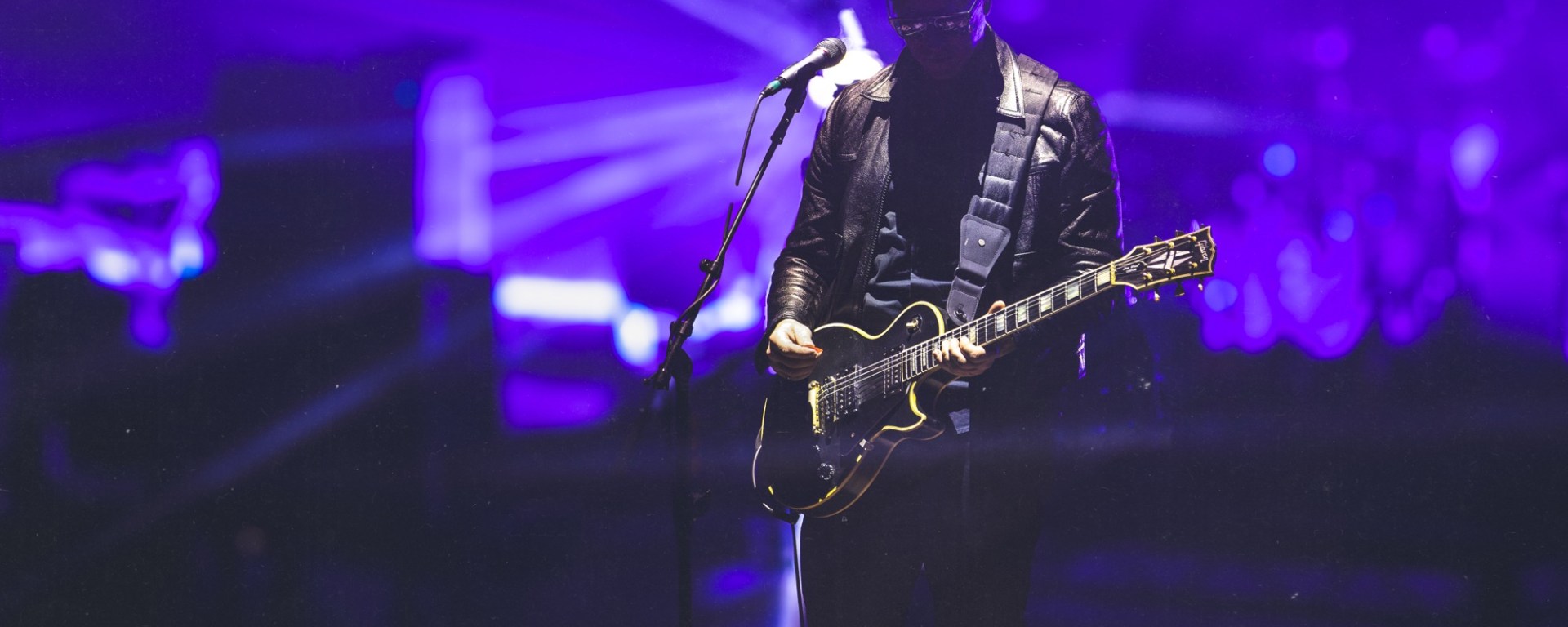 There’s something slightly surreal about watching Interpol perform their sophomore album Antics in full, twenty years after its release. Maybe it’s the fact that we’re old enough to remember ripping it from CD to burn it to our mini disc player, or perhaps it’s because The Halls in Wolverhampton feels like an oddly intimate venue for a band that once supported U2 on a stadium tour. Either way, we’re here, feeling both ancient and excited as Paul Banks and Daniel Kessler take the stage (drummer Sam Fogarino absent as he recovers from spinal surgery), looking irritatingly well-preserved in their trademark black attire, even from behind a white curtain that adds a touch of theatrics to tonight’s show with the bands silhouettes towering over the crowd, larger than life before it drops to the floor to give the crowd their first unobstructed glimpse of the NYC duo.
