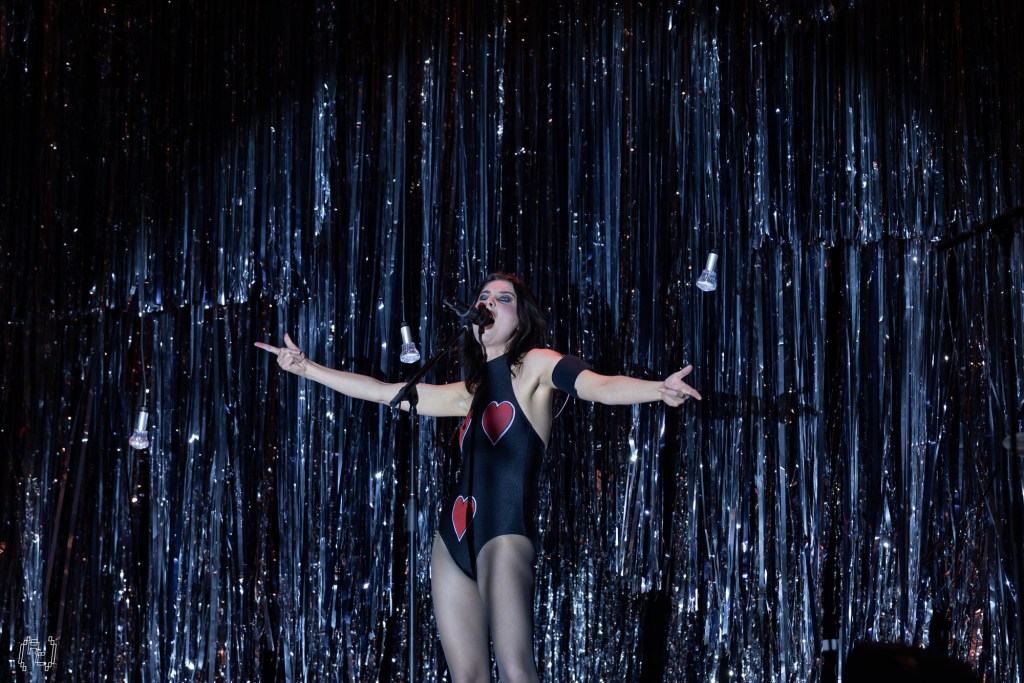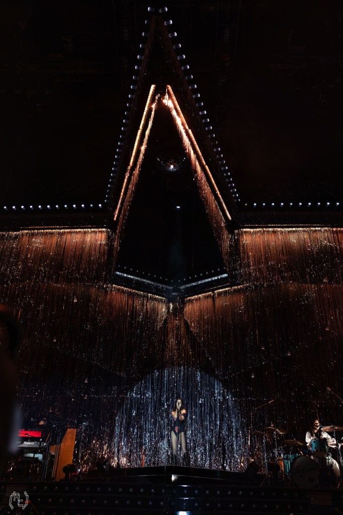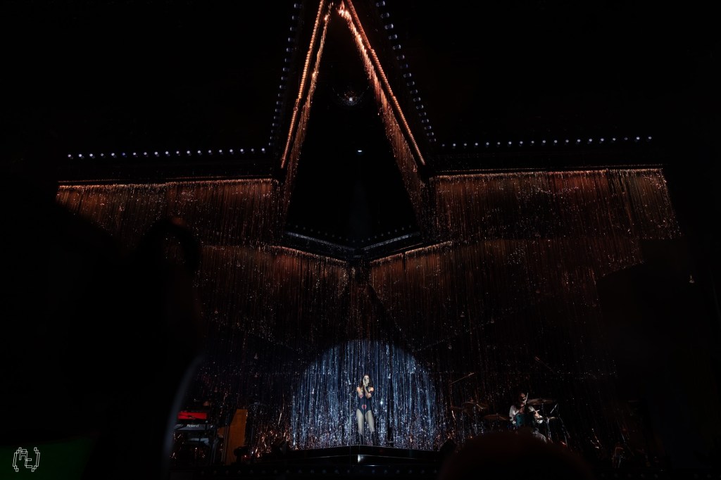 Then came “How Can I Make It OK?” which, on Blue Weekend, glows with a kind of melancholic sheen, its chorus soaring over a bed of restrained instrumentation. Live, it felt bigger without losing its ache. Rowsell’s vocal cut clean through the arena, and the crowd answered her in kind, thousands of voices rising beneath that glittering canopy. It was communal without being mawkish.