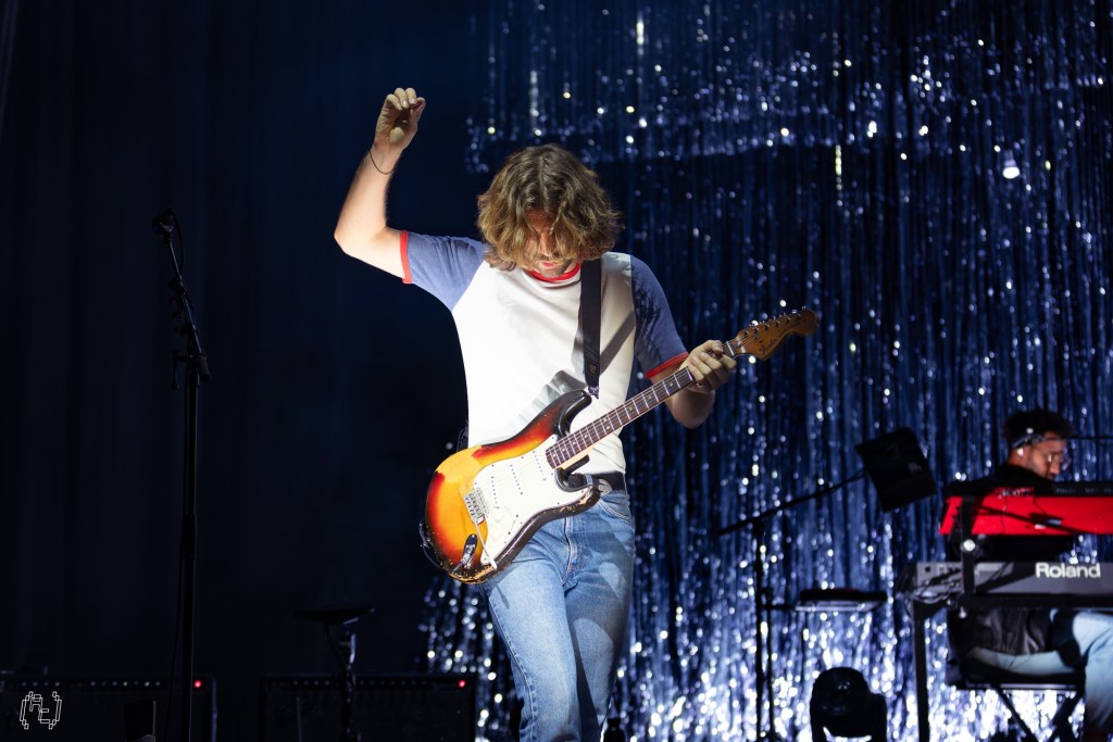 “Silk” and “Giant Peach” stretched out gloriously, the latter closing the main set in a blaze of noise that felt almost old-school indie in its abandon. Theo Ellis’s bass rumbled through the floor, Joff Oddie’s guitar lines slicing through the shimmer. The star burned brighter, the tinsel practically incandescent.